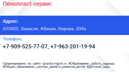 Пенопласт-сервис по адресу 655001, Хакасия, Абакан, Кирова, 204а в дальнейшем Организация, размещена в следующих категориях:
