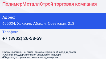 ПолимерМеталлСтрой, торговая компания по адресу 655004, Хакасия, Абакан, Советская, 213 в дальнейшем Организация, размещена в следующих категориях: