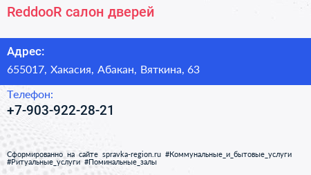RеddooR, салон дверей по адресу 655017, Хакасия, Абакан, Вяткина, 63 в дальнейшем Организация, размещена в следующих категориях: