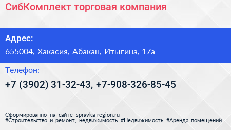 СибКомплект, торговая компания по адресу 655004, Хакасия, Абакан, Итыгина, 17а в дальнейшем Организация, размещена в следующих категориях: