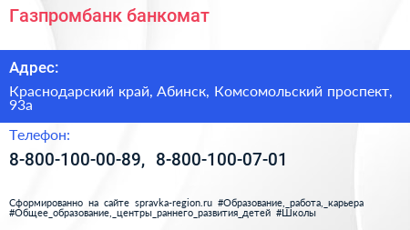 Газпромбанк, банкомат по адресу Краснодарский край, Абинск, Комсомольский проспект, 93а в дальнейшем Организация, размещена в следующих категориях: