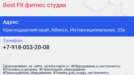 Best Fit, фитнес-студия по адресу Краснодарский край, Абинск, Интернациональная, 33а в дальнейшем Организация, размещена в следующих категориях: