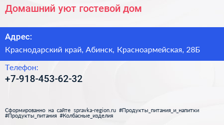 Домашний уют, гостевой дом по адресу Краснодарский край, Абинск, Красноармейская, 28Б в дальнейшем Организация, размещена в следующих категориях: