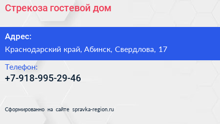 Стрекоза, гостевой дом по адресу Краснодарский край, Абинск, Свердлова, 17 в дальнейшем Организация, размещена в следующих категориях: