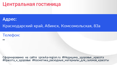 Центральная, гостиница по адресу Краснодарский край, Абинск, Комсомольская, 83а в дальнейшем Организация, размещена в следующих категориях: