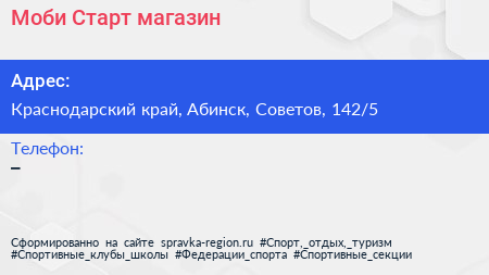 Моби Старт, магазин по адресу Краснодарский край, Абинск, Советов, 142/5 в дальнейшем Организация, размещена в следующих категориях: