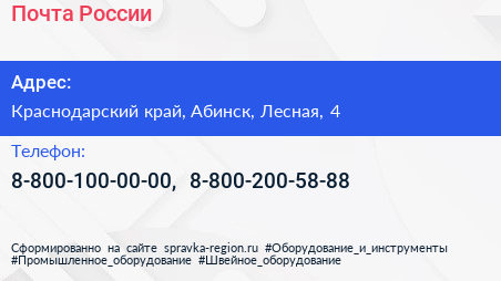 Почта России по адресу Краснодарский край, Абинск, Лесная, 4 в дальнейшем Организация, размещена в следующих категориях:
