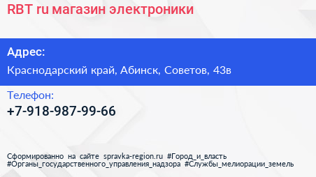 RBT.ru, магазин электроники по адресу Краснодарский край, Абинск, Советов, 43в в дальнейшем Организация, размещена в следующих категориях: