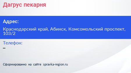 Дагрус, пекарня по адресу Краснодарский край, Абинск, Комсомольский проспект, 103/2 в дальнейшем Организация, размещена в следующих категориях: