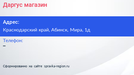Даргус, магазин по адресу Краснодарский край, Абинск, Мира, 1д в дальнейшем Организация, размещена в следующих категориях: