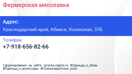 Фермерская мясолавка по адресу Краснодарский край, Абинск, Колхозная, 37Б в дальнейшем Организация, размещена в следующих категориях: