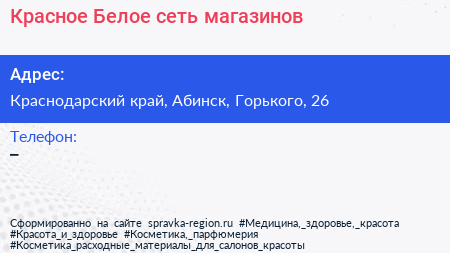 Красное & Белое, сеть магазинов по адресу Краснодарский край, Абинск, Горького, 26 в дальнейшем Организация, размещена в следующих категориях: