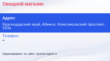 Овощной магазин по адресу Краснодарский край, Абинск, Комсомольский проспект, 103а в дальнейшем Организация, размещена в следующих категориях:
