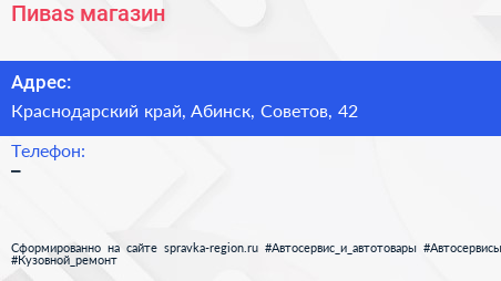Пивas, магазин по адресу Краснодарский край, Абинск, Советов, 42 в дальнейшем Организация, размещена в следующих категориях: