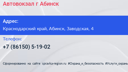 Автовокзал, г. Абинск по адресу Краснодарский край, Абинск, Заводская, 4 в дальнейшем Организация, размещена в следующих категориях: