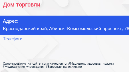 Дом торговли по адресу Краснодарский край, Абинск, Комсомольский проспект, 78 в дальнейшем Организация, размещена в следующих категориях: