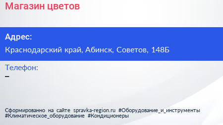 Магазин цветов по адресу Краснодарский край, Абинск, Советов, 148Б в дальнейшем Организация, размещена в следующих категориях:
