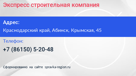 Экспресс, строительная компания по адресу Краснодарский край, Абинск, Крымская, 45 в дальнейшем Организация, размещена в следующих категориях: