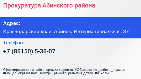 Прокуратура Абинского района по адресу Краснодарский край, Абинск, Интернациональная, 37 в дальнейшем Организация, размещена в следующих категориях: