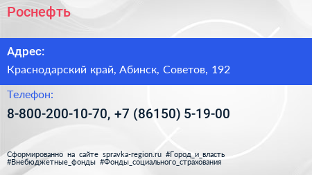 Роснефть по адресу Краснодарский край, Абинск, Советов, 192 в дальнейшем Организация, размещена в следующих категориях:
