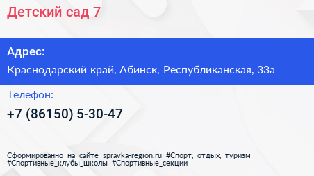 Детский сад №7 по адресу Краснодарский край, Абинск, Республиканская, 33а в дальнейшем Организация, размещена в следующих категориях: