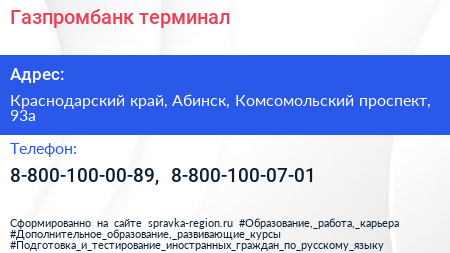 Газпромбанк, терминал по адресу Краснодарский край, Абинск, Комсомольский проспект, 93а в дальнейшем Организация, размещена в следующих категориях: