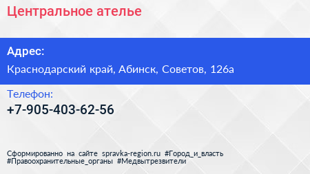 Центральное, ателье по адресу Краснодарский край, Абинск, Советов, 126а в дальнейшем Организация, размещена в следующих категориях: