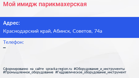 Мой имидж, парикмахерская по адресу Краснодарский край, Абинск, Советов, 74а в дальнейшем Организация, размещена в следующих категориях: