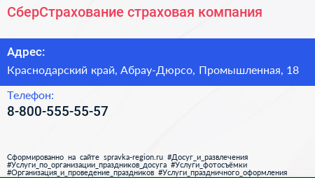 СберСтрахование, страховая компания по адресу Краснодарский край, Абрау-Дюрсо, Промышленная, 18 в дальнейшем Организация, размещена в следующих категориях: