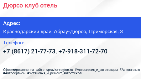 Дюрсо, клуб-отель по адресу Краснодарский край, Абрау-Дюрсо, Приморская, 3 в дальнейшем Организация, размещена в следующих категориях: