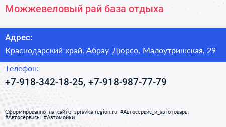 Можжевеловый рай, база отдыха по адресу Краснодарский край, Абрау-Дюрсо, Малоутришская, 29 в дальнейшем Организация, размещена в следующих категориях: