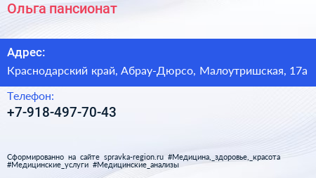 Ольга, пансионат по адресу Краснодарский край, Абрау-Дюрсо, Малоутришская, 17а в дальнейшем Организация, размещена в следующих категориях: