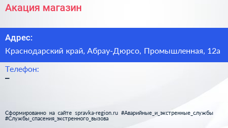 Акация, магазин по адресу Краснодарский край, Абрау-Дюрсо, Промышленная, 12а в дальнейшем Организация, размещена в следующих категориях: