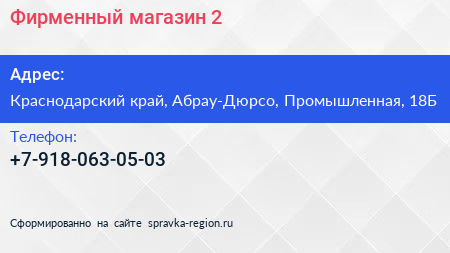 Фирменный магазин №2 по адресу Краснодарский край, Абрау-Дюрсо, Промышленная, 18Б в дальнейшем Организация, размещена в следующих категориях: