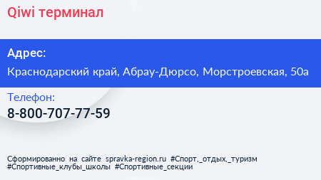 Qiwi, терминал по адресу Краснодарский край, Абрау-Дюрсо, Морстроевская, 50а в дальнейшем Организация, размещена в следующих категориях: