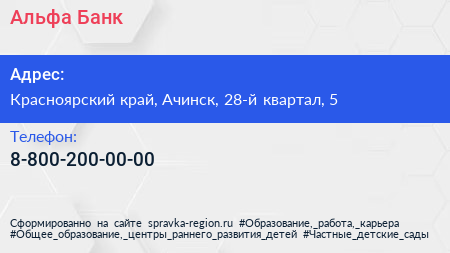 Альфа-Банк по адресу Красноярский край, Ачинск, 28-й квартал, 5 в дальнейшем Организация, размещена в следующих категориях: