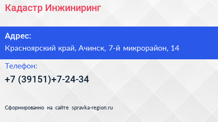 Кадастр Инжиниринг по адресу Красноярский край, Ачинск, 7-й микрорайон, 14 в дальнейшем Организация, размещена в следующих категориях: