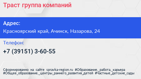 Траст, группа компаний по адресу Красноярский край, Ачинск, Назарова, 24 в дальнейшем Организация, размещена в следующих категориях: