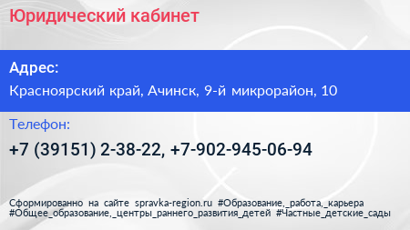 Юридический кабинет по адресу Красноярский край, Ачинск, 9-й микрорайон, 10 в дальнейшем Организация, размещена в следующих категориях: