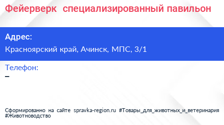 Фейерверк+, специализированный павильон по адресу Красноярский край, Ачинск, МПС, 3/1 в дальнейшем Организация, размещена в следующих категориях: