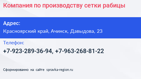 Компания по производству сетки-рабицы по адресу Красноярский край, Ачинск, Давыдова, 23 в дальнейшем Организация, размещена в следующих категориях: