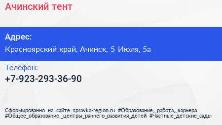 Ачинский тент по адресу Красноярский край, Ачинск, 5 Июля, 5а в дальнейшем Организация, размещена в следующих категориях: