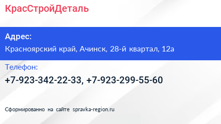 КрасСтройДеталь по адресу Красноярский край, Ачинск, 28-й квартал, 12а в дальнейшем Организация, размещена в следующих категориях: