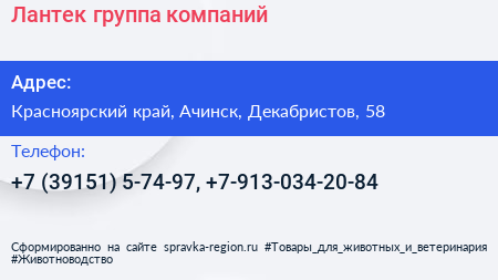 Лантек, группа компаний по адресу Красноярский край, Ачинск, Декабристов, 58 в дальнейшем Организация, размещена в следующих категориях: