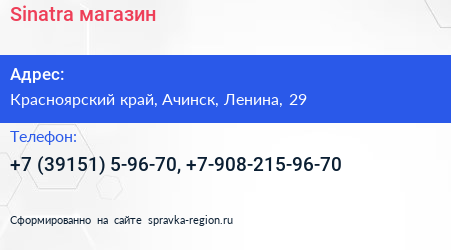Sinatra, магазин по адресу Красноярский край, Ачинск, Ленина, 29 в дальнейшем Организация, размещена в следующих категориях:
