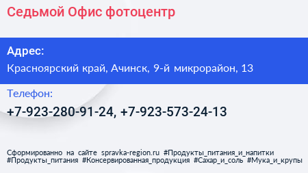 Седьмой Офис, фотоцентр по адресу Красноярский край, Ачинск, 9-й микрорайон, 13 в дальнейшем Организация, размещена в следующих категориях: