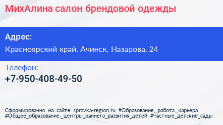 МихАлина, салон брендовой одежды по адресу Красноярский край, Ачинск, Назарова, 24 в дальнейшем Организация, размещена в следующих категориях: