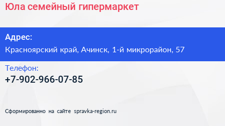 Юла, семейный гипермаркет по адресу Красноярский край, Ачинск, 1-й микрорайон, 57 в дальнейшем Организация, размещена в следующих категориях: