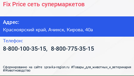 Fix Price, сеть супермаркетов по адресу Красноярский край, Ачинск, Кирова, 40а в дальнейшем Организация, размещена в следующих категориях: