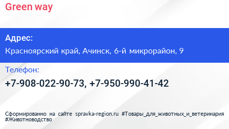 Green way по адресу Красноярский край, Ачинск, 6-й микрорайон, 9 в дальнейшем Организация, размещена в следующих категориях: